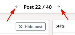 By clicking the left or right arrow, you can move to the previous or next post and collect data for it as well.