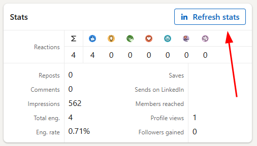 LinkedIn has recently enabled tracking of additional metrics, such as the number of saves, sends, reach, profile views, and followers gained thanks to a post.