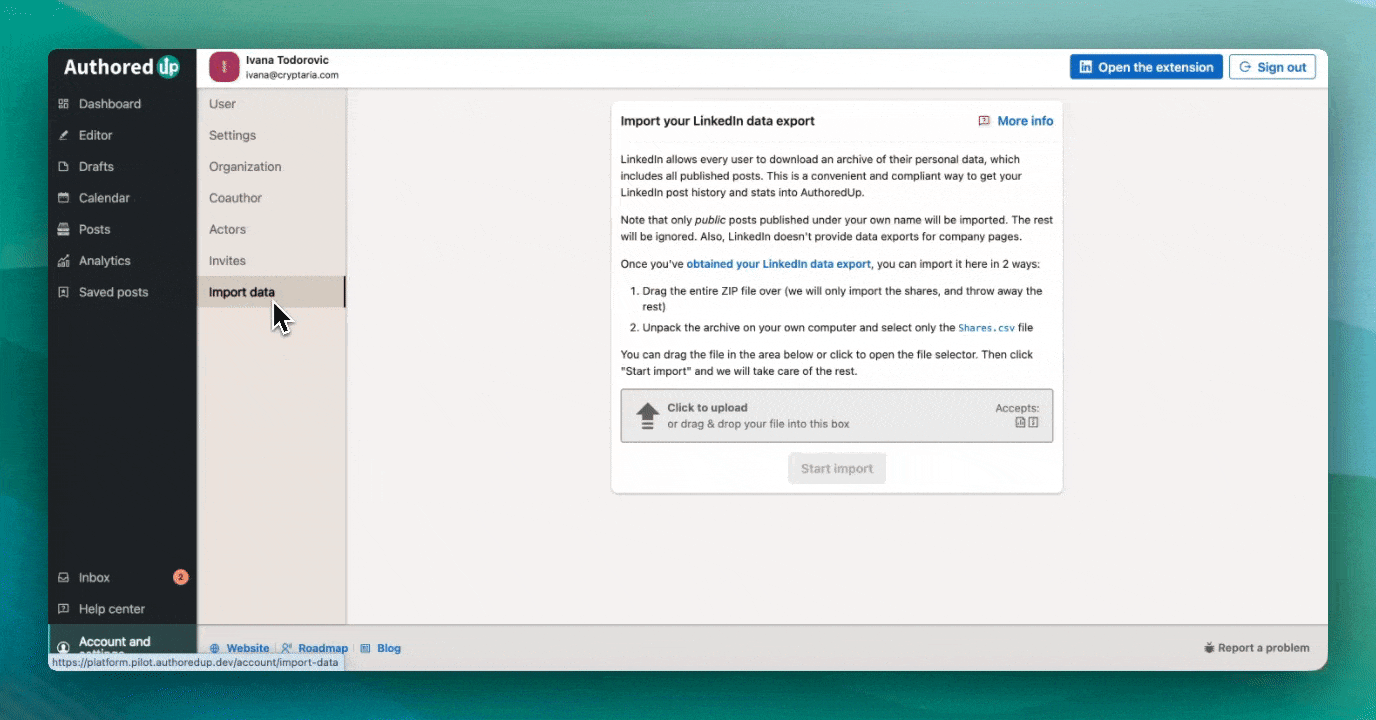 How to import your LinkedIn data export into AuthoredUp?